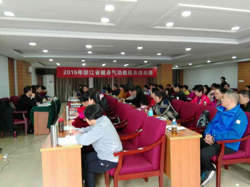 3月19日至20日,2015年浙江省健身气功教练员提高班在杭州射击射箭中心举办,本次活动由浙江省体育局主办、杭州市健身气功协会承办,提高班邀请了健身气功领域专家对浙江省11个地级市的教练员进行理论和实践的培训,培训班旨在通过对骨干教练员的培训,从而带动其所在各个健身气功辅导站点的整体水平,从而促进全省健身气功的发展,浙江省体育局群体处处长沈延红等领导出席了本次提高班。